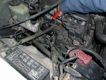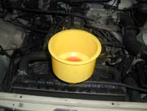 | エアーコンディショナー温度調整レバー をHOT側にしてから、ラジエター 下のドレンを外して抜き取りです。 |