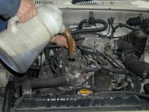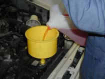 ラジエター下のドレンを締めて、 サブタンクを取り付けたら、新しい クーラントを入れます。 |