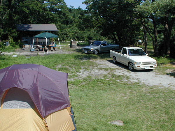 | 福井のwhozzy君と一緒に1泊2日で、富山県内に有る某キャンプ場に行ってきました。 LowerdしたTruckでも意外とキャンプ場に溶け込んでます。 区切られたエリアも無く、空いてる所が有れば自由に使えるキャンプ場です。 |