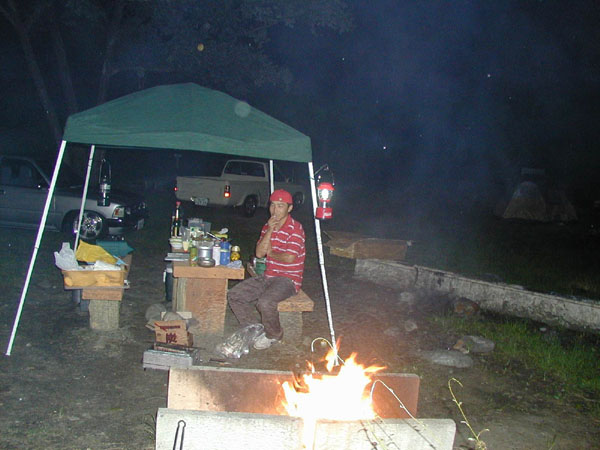 | アルコールも適度にいただいて、少し出来上がって来た頃だと思います(^_^;) 焚き火の出来るキャンプ場は良い! お盆も過ぎているし、日曜の夕方からのキャンプだったのでキャンプ場は貸切状態です。 翌日の午前中は僕のTOYOTAで付近をDrive。 時々、BBSに書き込みしてくれるKG9の地元でも有り、白のブリTOYを置いて有る駐車場も発見したし、 製作中のベッドが降ろされた状態のブリTOY2号車も目撃しました。 白のTOYOTAの方は、絶対に発見出来ない場所です。 多分、KG9もビックリだと思います(笑) |